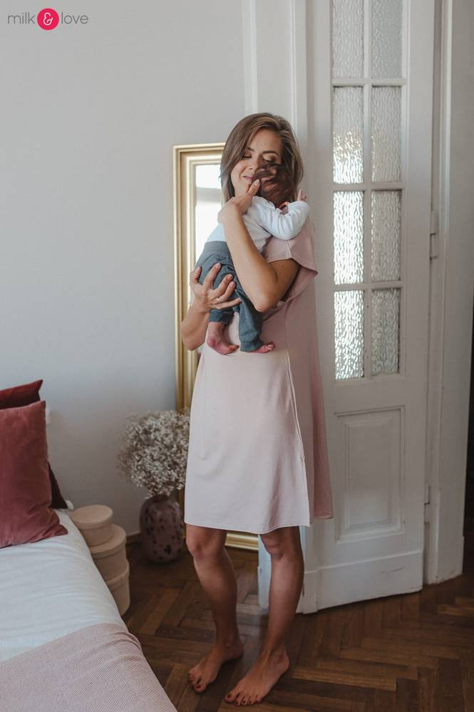 Moon bambusowa koszula nocna ciążowa i do karmienia Milk&Love pudrowy róż
