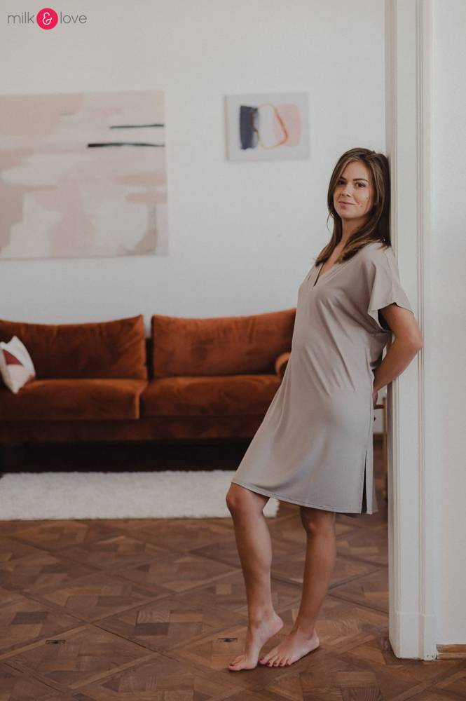 Koszula do karmienia Moon posiada niezwykle komfortowe rozwiązanie ułatwiające karmienie - wzmocniony dekolt w kształcie litery V, przez który swobodnie można nakarmić dziecko w każdej pozycji.