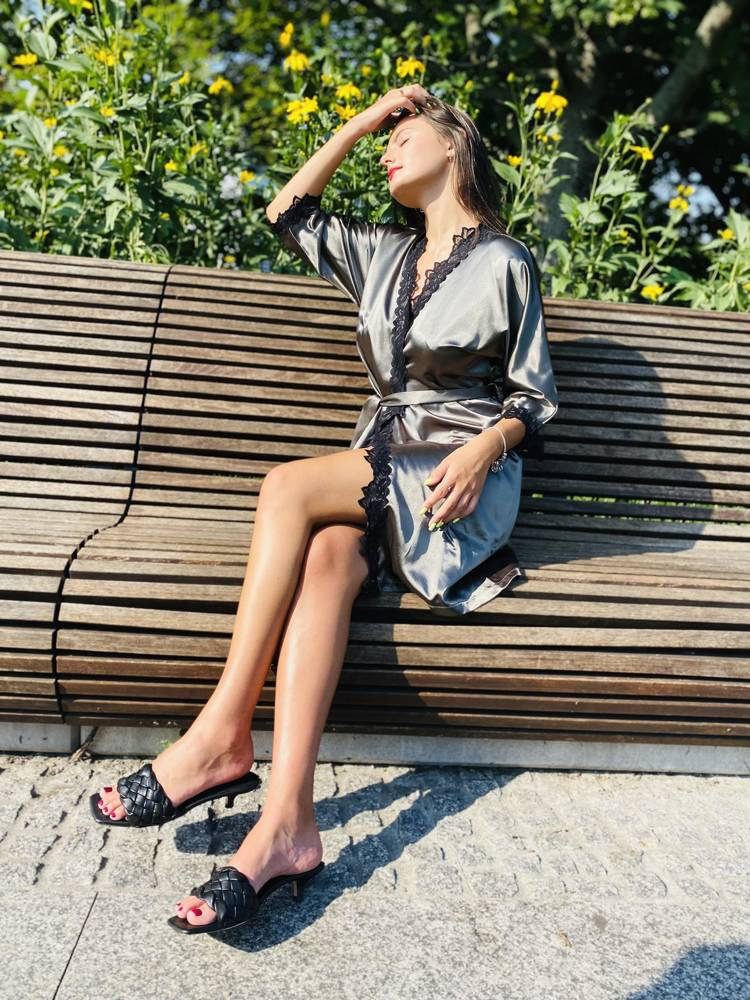 Tento model má všechny vlastnosti dokonalé spodní sukně - je sexy, vyrobená z kvalitního materiálu a její střih dokonale zvýrazní každou siluetu. Pokud máte rádi smyslné župany, které jemně obepínají vaše tělo a dotek chladivého saténu na vaší rozehřáté pokožce je něco, co vám dodává pocit luxusu, musíte si vybrat náš župan. Přední díl a široké rukávy jsou zdobeny kvalitní krajkou, která vytváří jedinečný efekt. Zaručujeme, že se v něm budete cítit velmi žensky a smyslně. K županu je přidán saténový pásek, který vám umožní správné nastavení a vyrovnání proporcí.