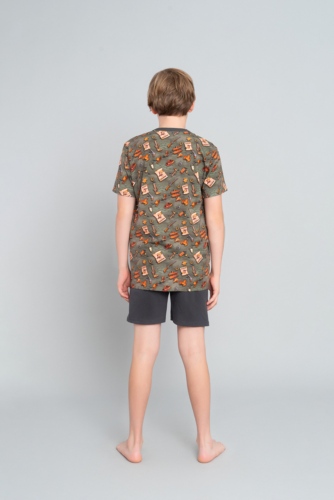 Westernové chlapecké pyžamo s krátkým rukávem, kalhoty Italian Fashion - olivová/grafitová barva