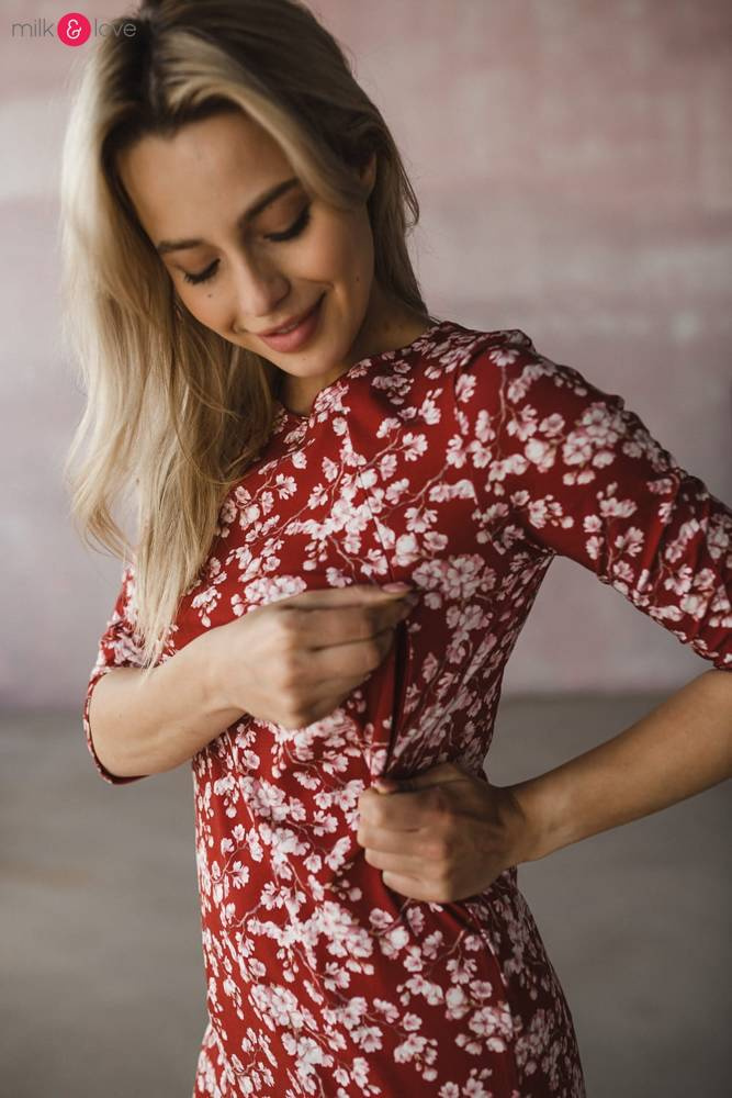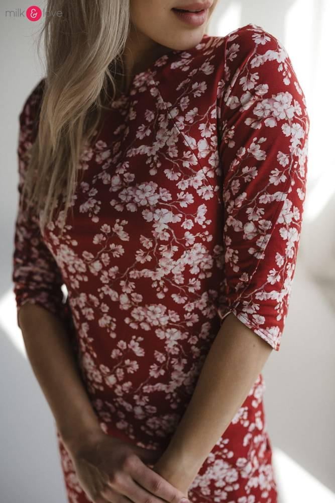 Milky Dress Sukienka do karmienia Milk&Love rękaw 3/4 burgund w kwiaty