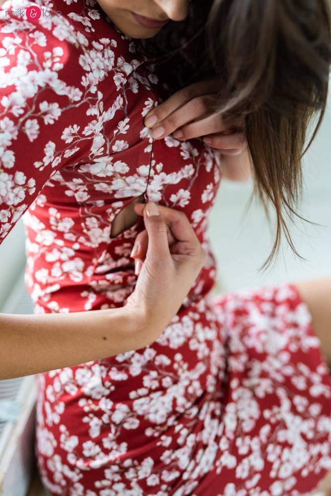 - Sukienka posiada wytrzymałe, kryte suwaki, które umożliwiają komfortowe i dyskretnie karmienie piersią, w każdej sytuacji - odsuwane od dołu
