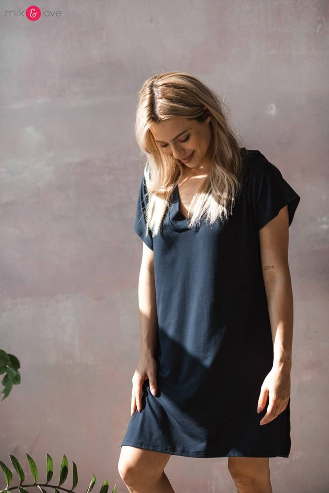 Moon bambusowa koszula nocna ciążowa i do karmienia Milk&Love granatowy