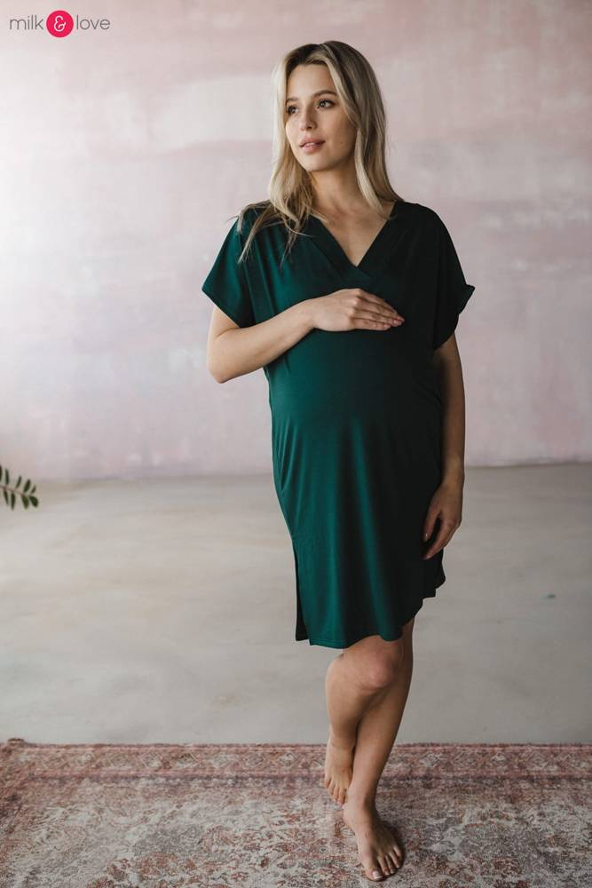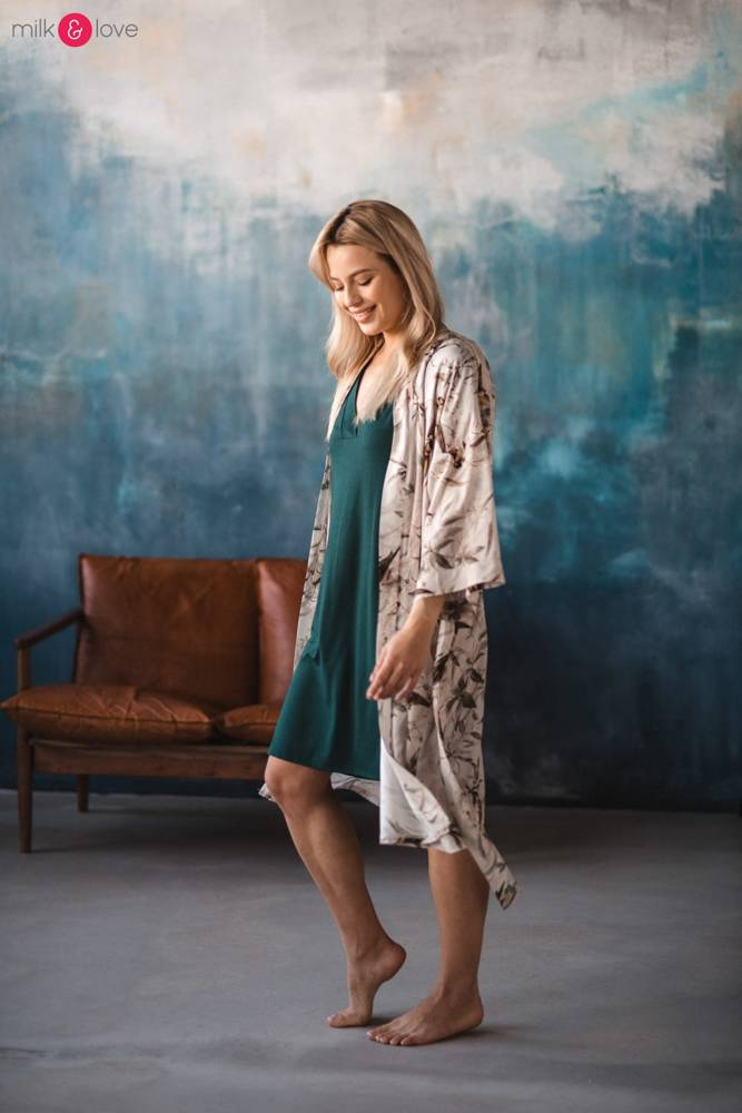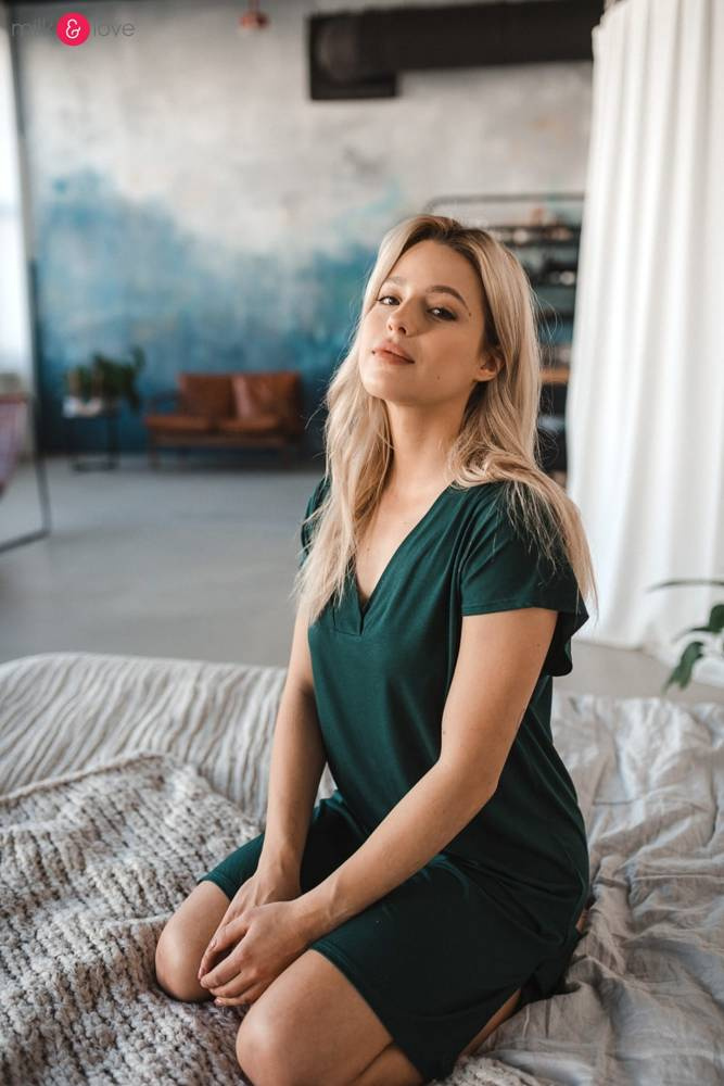 Moon bambusowa koszula nocna ciążowa i do karmienia Milk&Love butelkowa zieleń
