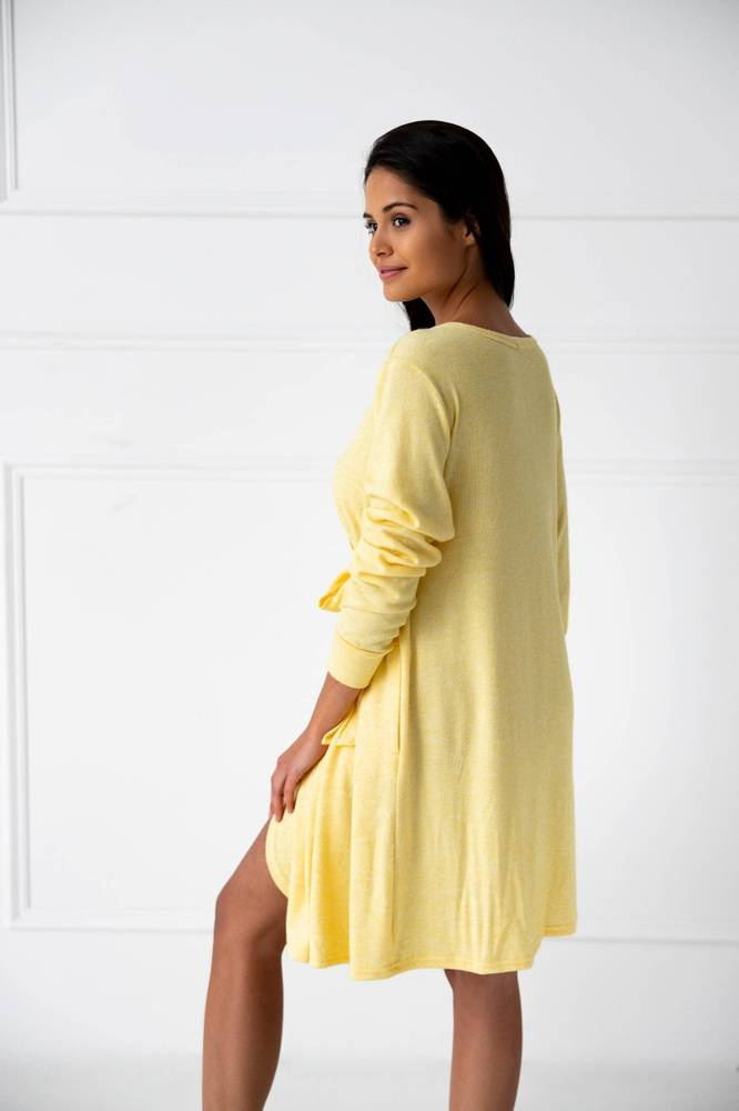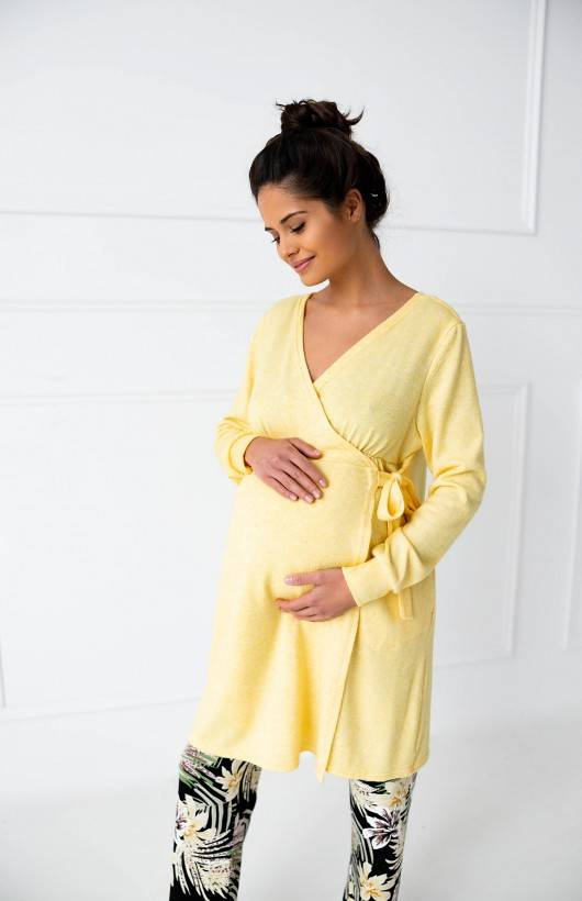 Szlafrok damski wykonany z przyjemnego dla ciała materiału. Model z długim rękawem. Kopertowy fason z paskiem świetnie dopasowuje się do sylwetki. Szlafrok idealnie komponuje się z koszulą bądź piżamą dostępną w naszej kolekcji bielizny nocnej. Szlafrok wiązany pod biustem idealnie nadaje się dla kobiet w ciąży i mam karmiących. Po bokach posiada wygodne kieszenie
