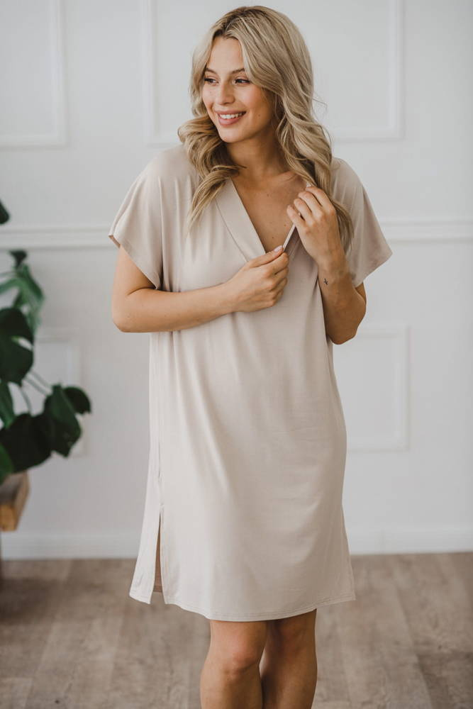 Moon bambusowa koszula nocna ciążowa i do karmienia Milk&Love jasny beż