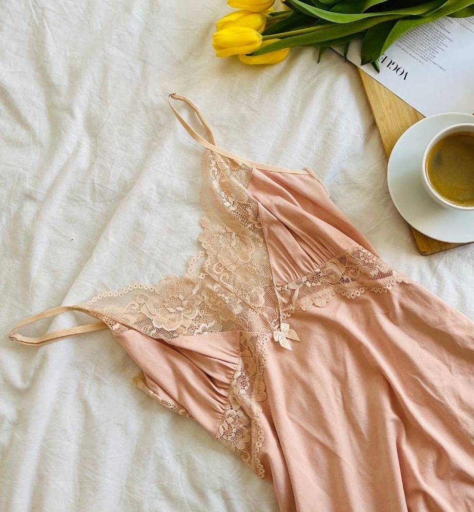 Dvoudílné pyžamo De lafense z vysoce kvalitní viskózy. Ideální pro dobrý spánek a skvělý start do nového dne s první ranní kávou. Tričko s úzkými ramínky, zdobené krajkou. Pevné šortky, krátké, typ šortek.