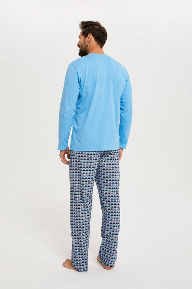 Pánské pyžamo v nadčasovém klasickém střihu. Díky pečlivému řemeslnému zpracování a důrazu na detail je výrobek odolný a bude plnit svou funkci po mnoho let. Pyžamo s dlouhými rukávy a náprsní kapsou zvýrazněnou jemnou vzorovanou vsadkou ze stejné látky jako kalhoty dodá svým jednoduchým a nepřehlédnutelným způsobem elegantní a šik nádech. Bonusem je výstřih do V pro větší pohodlí a komfort.