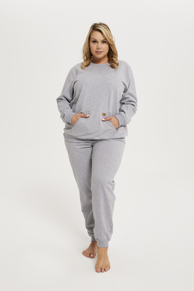 Mikinová souprava Fox z melanžového úpletu je ideální volbou pro podzimní/zimní sezónu. Silnější tkanina teplákové soupravy zajistí teplo a zahalí tělo, když teplota za oknem klesá stále rychleji. Souprava je ideální volbou jak pro domácí oblečení, tak pro každodenní oděv, ve kterém můžete vyjít z domu