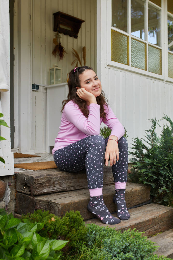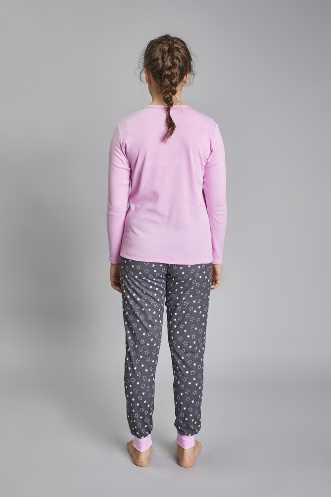 Dívčí pyžamo s roztomilým potiskem na tričku. Je vyrobena ze 100% bavlny, poskytuje mimořádné pohodlí a zaručuje měkkost a potěšení pro nejmenší. Pyžamové kalhoty jsou zakončeny žebrovaným lemem, takže jsou velmi praktické a pohodlné.