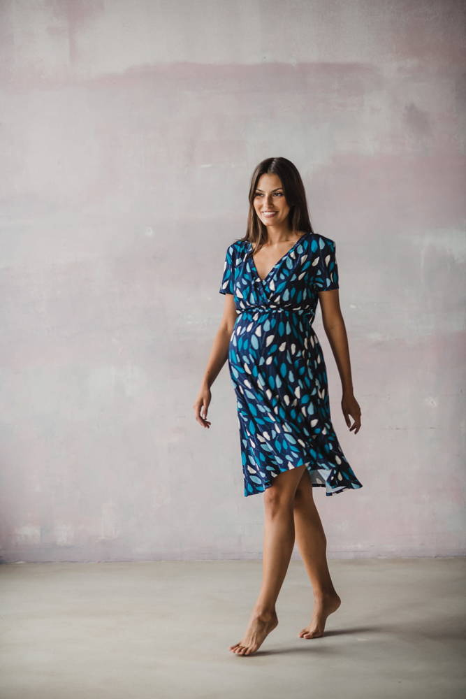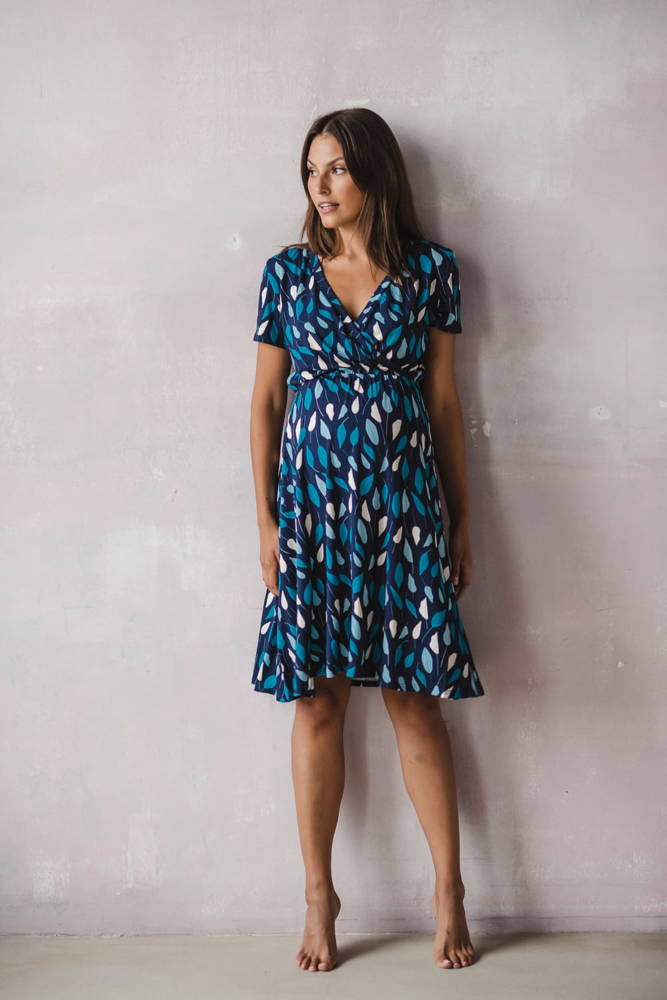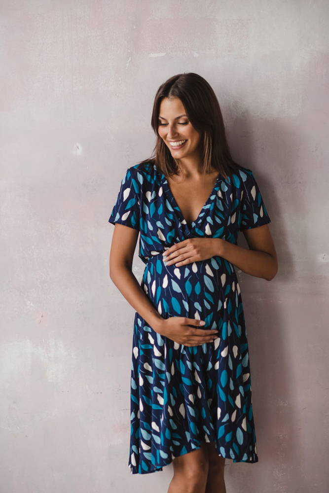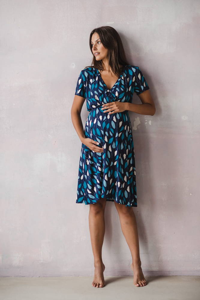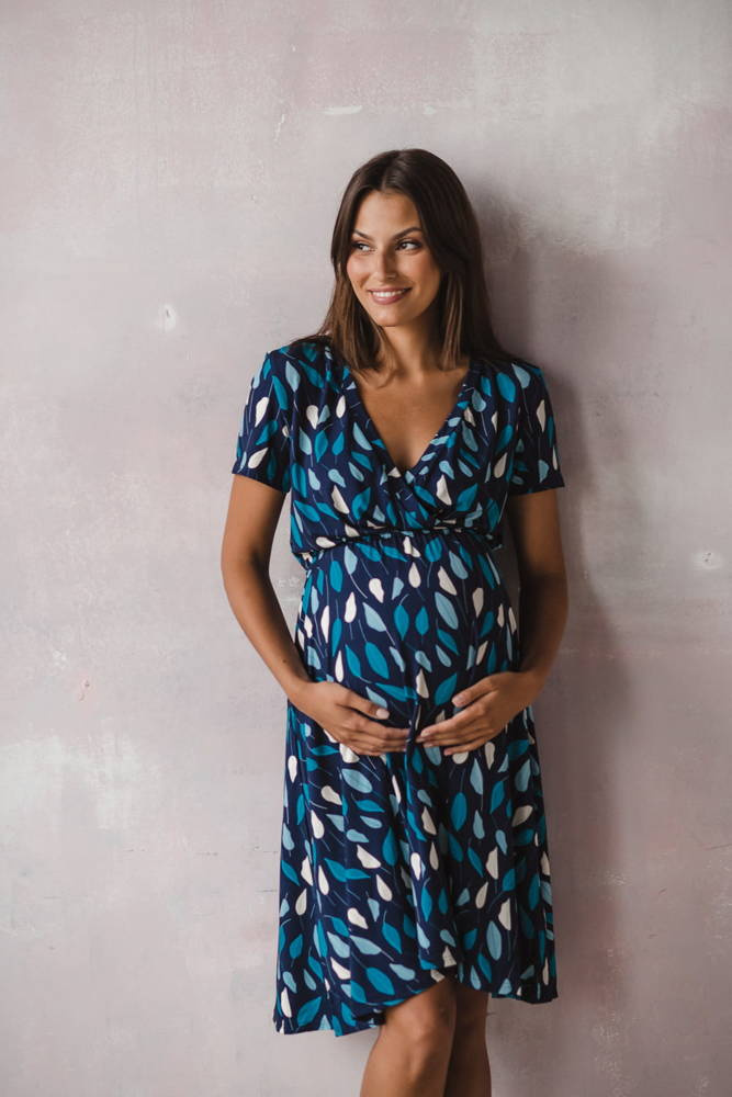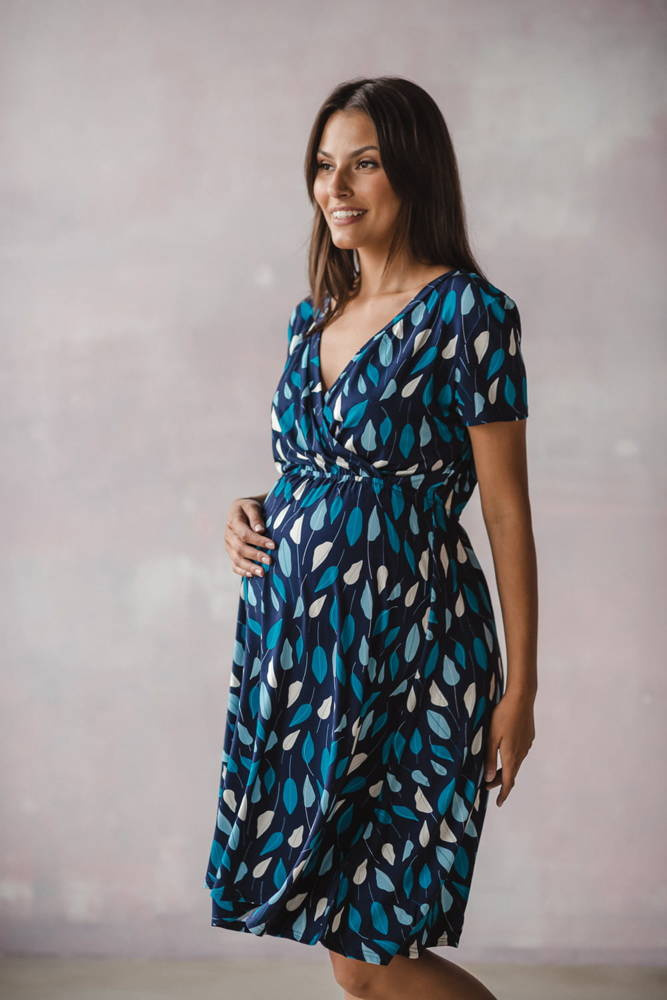 Two Ways MIDI Sukienka ciążowa i do karmienia krótki rękaw Milk&Love listki na granacie