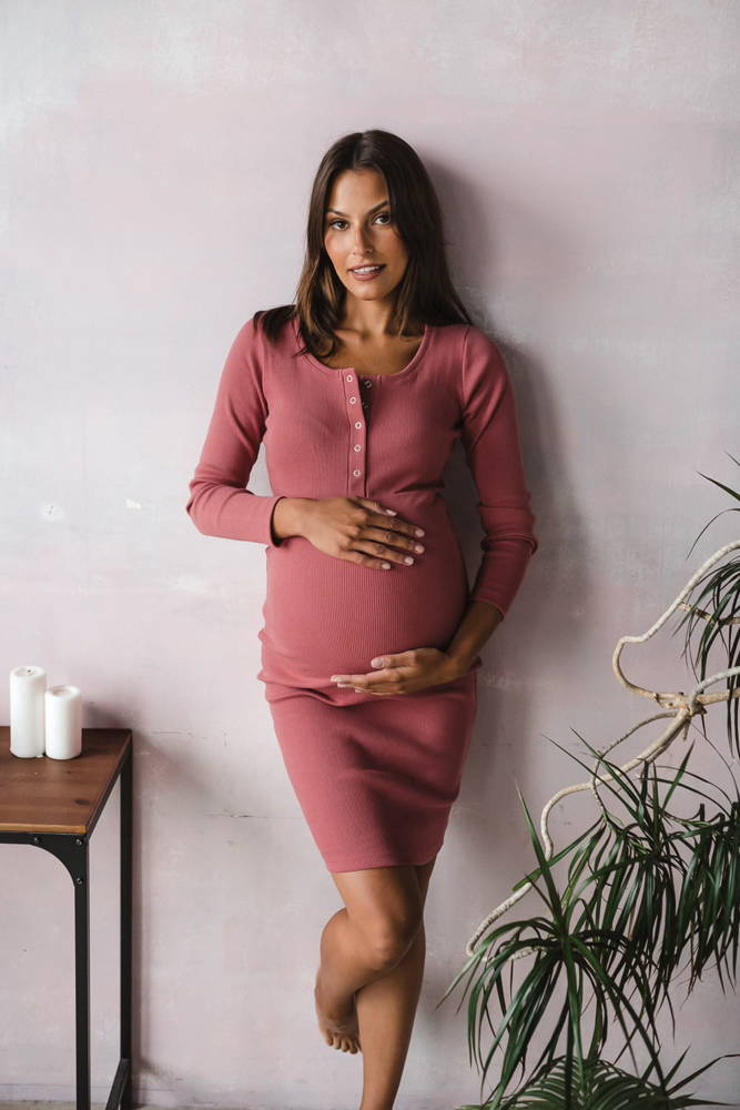 Tummy Sukienka ciążowa i do karmienia z dzianiny w prążek Milk&Love dusty cedar
