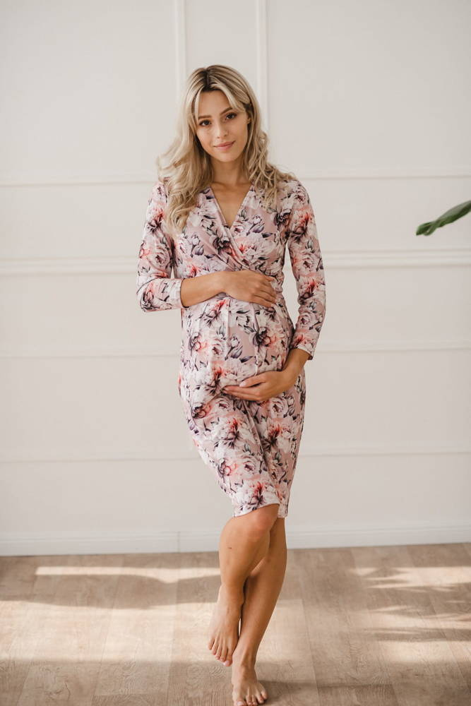 Grow with me sukienka ciążowa i do karmienia Milk&Love brudny róż w kwiaty