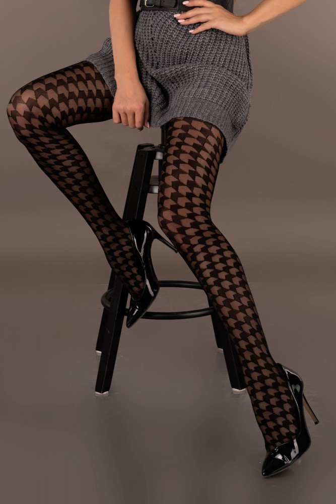Elegantní a pohodlné dámské punčochové kalhoty. Pepit je kontrastní kombinace černé a bílé, kterou v módě považujeme za nejčistší vintage klasiku. Tento model oživí váš podzimní styling, ať už do kanceláře, nebo na večer.