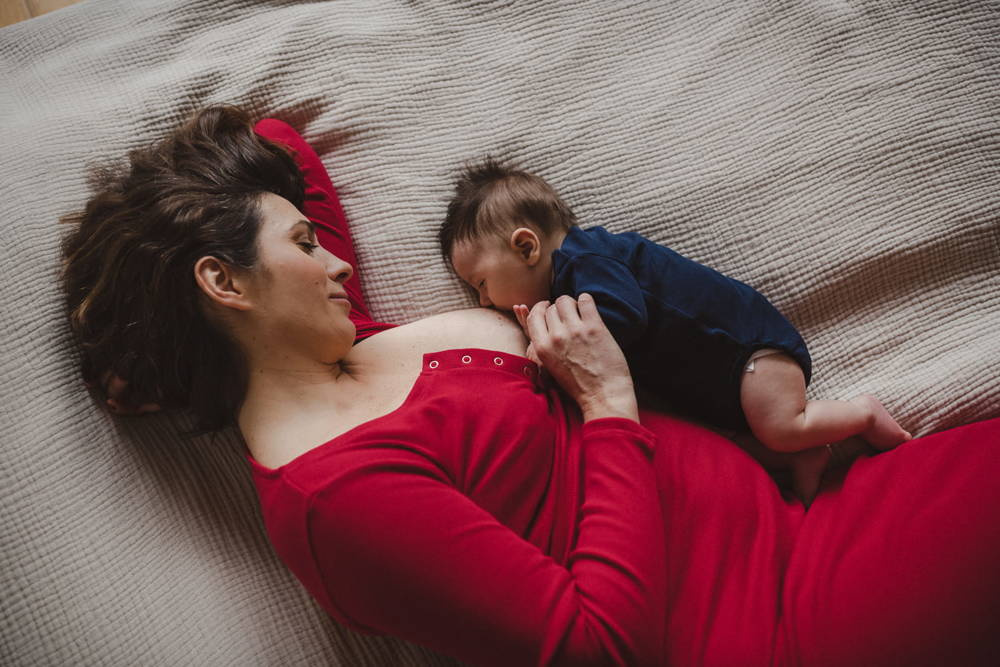 Tummy Sukienka ciążowa i do karmienia z dzianiny w prążek Milk&Love karminowy