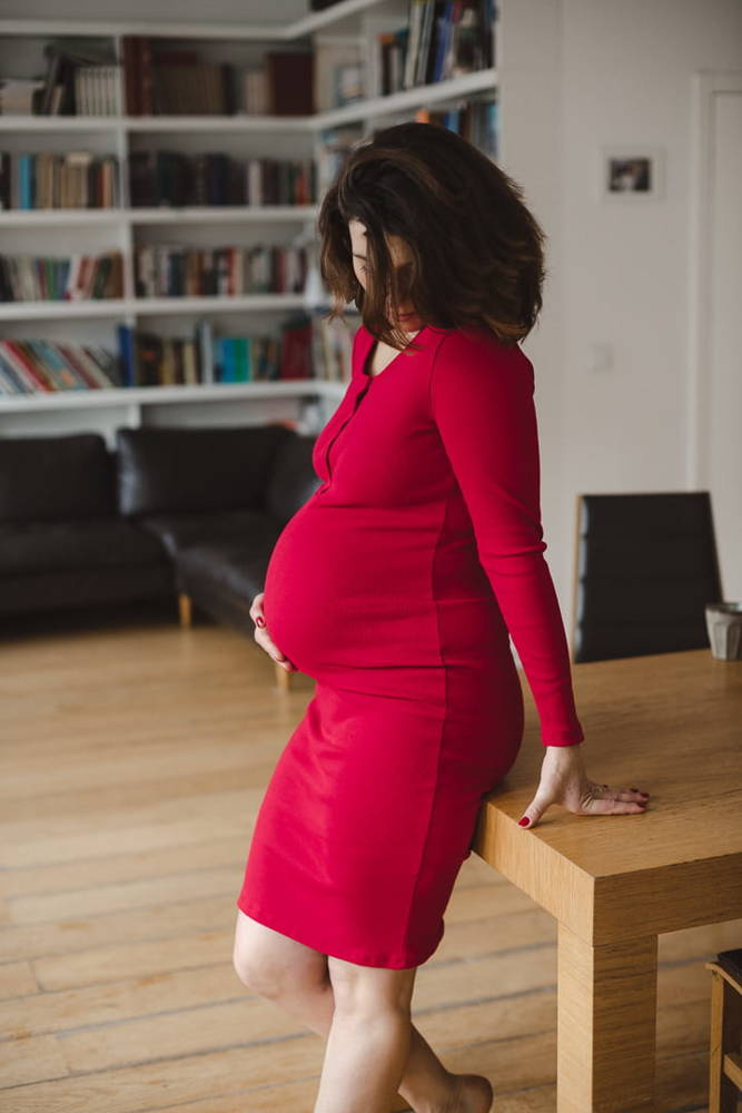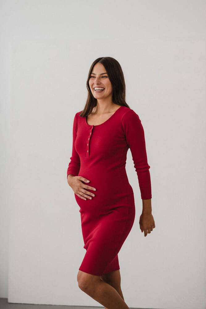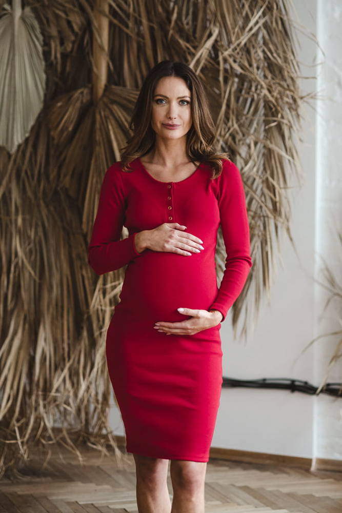 Wygodna sukienka ciążowa uszyta z wysokiej jakości dzianiny, która się nie odkształca! Ma dopasowany krój, a dzięki napom przy dekolcie swobodnie nakarmisz w niej maluszka. Można ją nosić także po ciąży, jako zwykłą sukienkę typu bodycon! Idealna na co dzień i na specjalne okazje Została uszyta z miękkiej dzianiny, która przeszła rygorystyczne testy Oeko-Tex Standard 100. Bawełniana dzianina zachowuje gładkość i  głęboki kolor nawet po wielu praniach. Uszyta w Polsce!