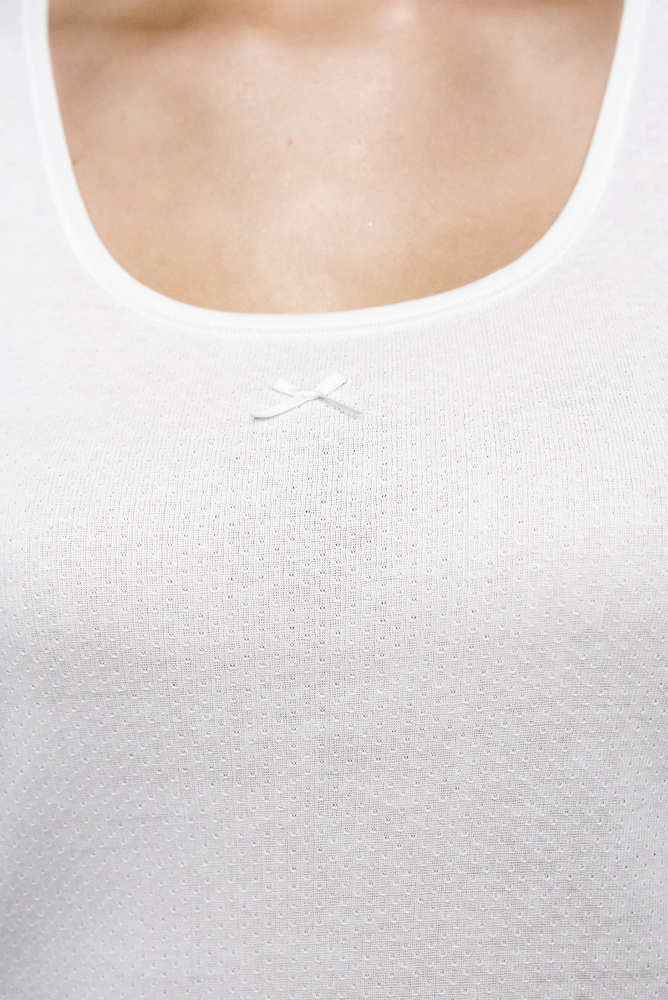 Klasická košilka Debi se saténovou mašlí je ideální volbou pro ty, kteří ocení vysokou kvalitu zpracování. Při výběru tohoto oděvu je nejdůležitější příjemná a prodyšná tkanina, a proto bylo tričko Debi vyrobeno z čisté bavlny. Antialergická a na dotek příjemná tkanina a široká ramínka zvýší vaše pohodlí a zajistí, že prádlo nebude odhaleno ani při intenzivním cvičení. Zaměřujeme se na vaše pohodlí, takže si můžete být jisti, že vaše pokožka bude dokonale chráněna před chladem a drsnou strukturou svrchního oblečení. Jemná ozdoba v podobě saténové mašle dodává košilce elegantní a sofistikovaný nádech. Tento decentní doplněk znamená, že tričko bude vypadat stejně dobře jako exponovaná součást stylingu.
