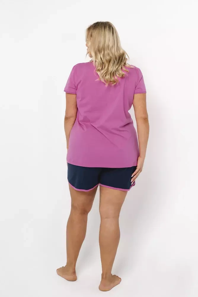 Ontega Dámské pyžamo s krátkým rukávem, šortky Italian Fashion - amarantová/ tmavě modrá