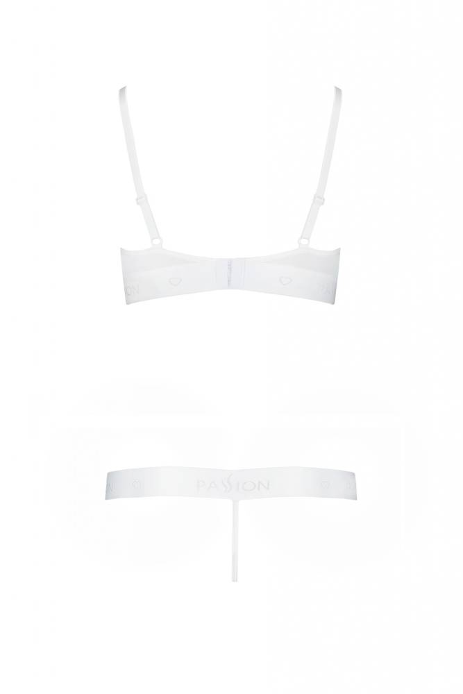 Neobvyklá otevřená podprsenka. Určeno pro ženy, které mají rády odvážné a neobvyklé spodní prádlo. Dokonale zvýrazňuje prsa a svůdná ramínka obepínající tělo dodávají celku šmrnc. Sada obsahuje otevřenou podprsenku a tanga s vysokým výstřihem