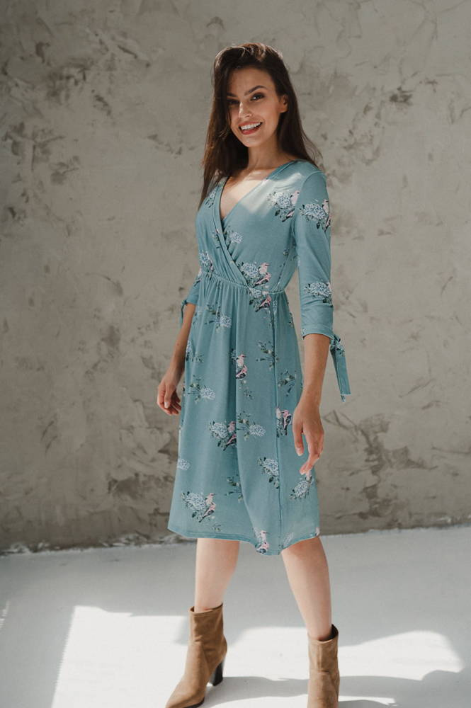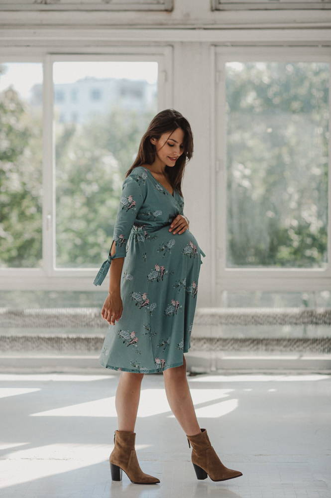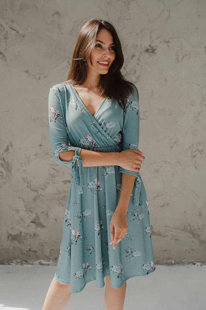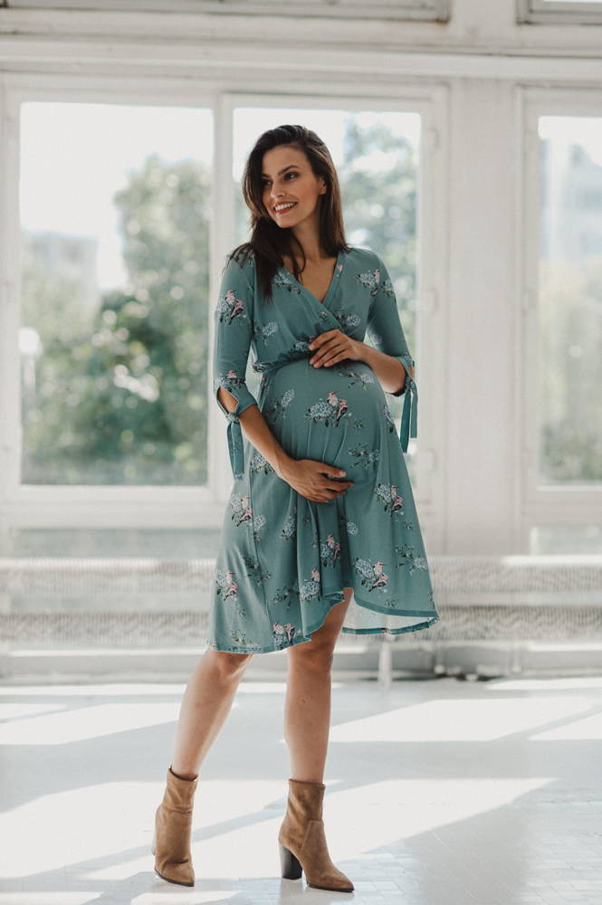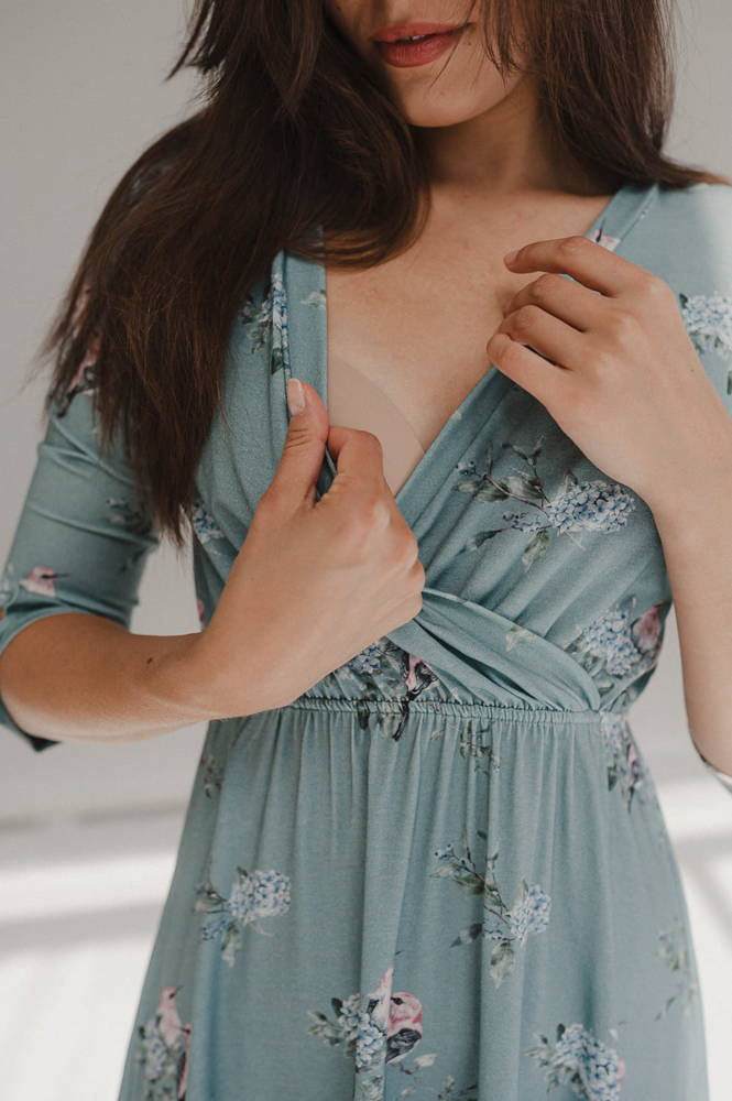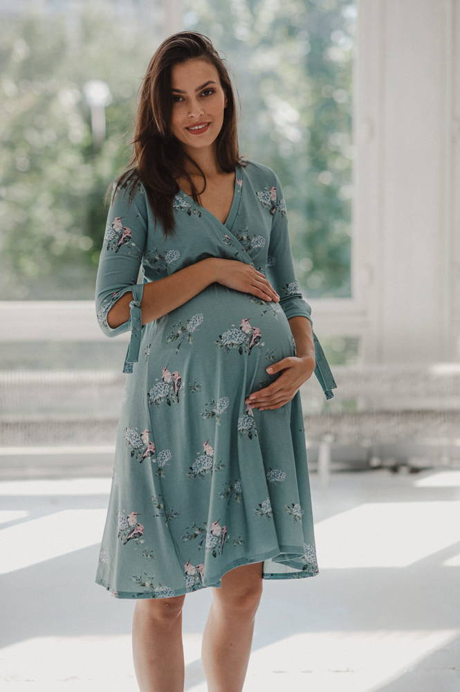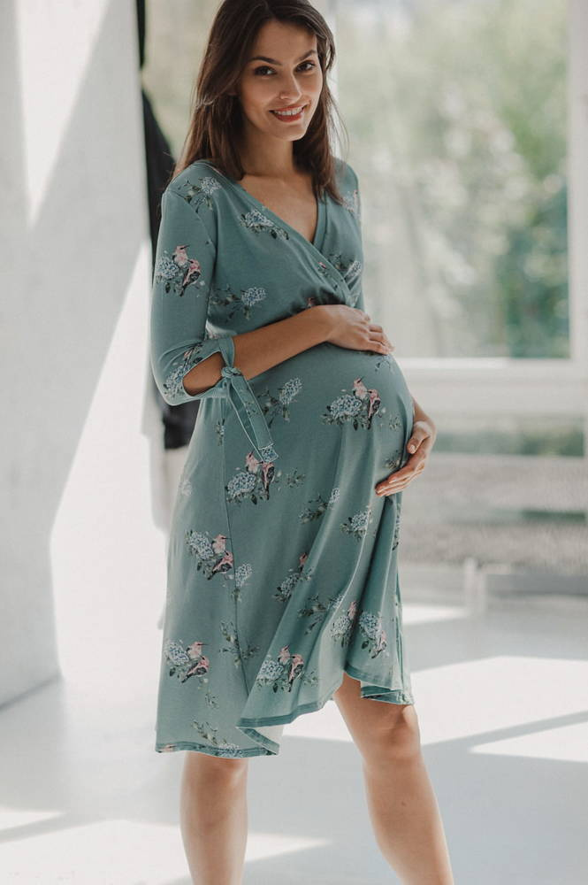 Two Ways MIDI Sukienka ciążowa i do karmienia Milk&Love eukaliptus w hortensje