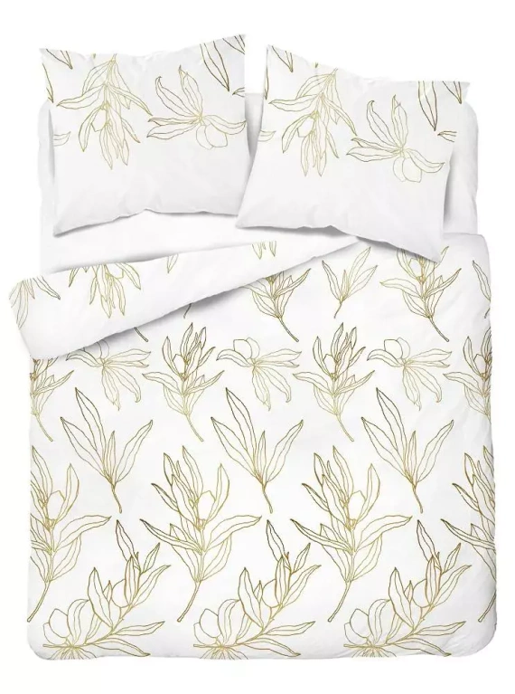 4448 B Home Satin Pościel satynowa liście Detexpol biały